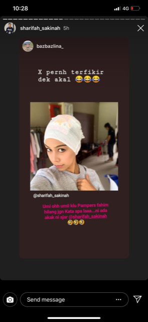 Menerusi IGStory Sakinah juga dia telah ‘repost’ foto-foto peminatnya yang memakai inner lampin sepertinya dan rata-rata akui pelakon itu benar-benar lawak.