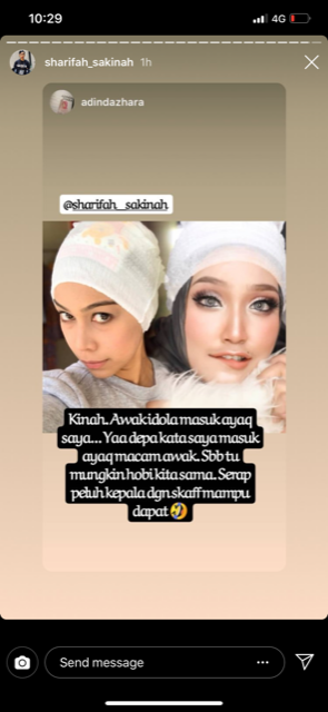 Terdahulu Sakinah memuat naik tutorial memakai tudung menggunakan inner lampin bayi di IGnya, namun ia telah dipadam.