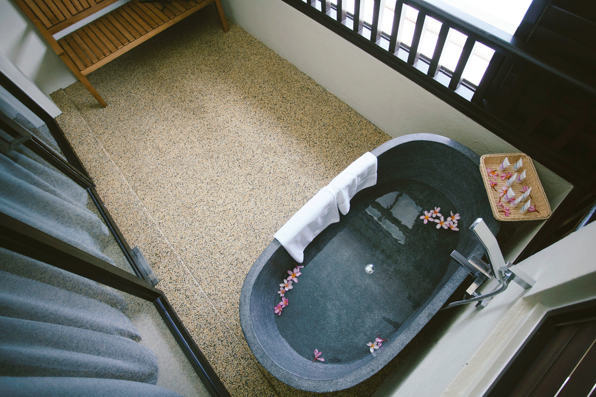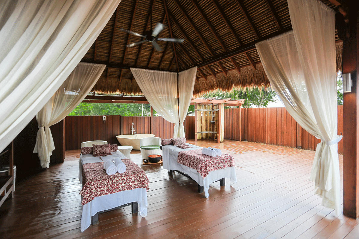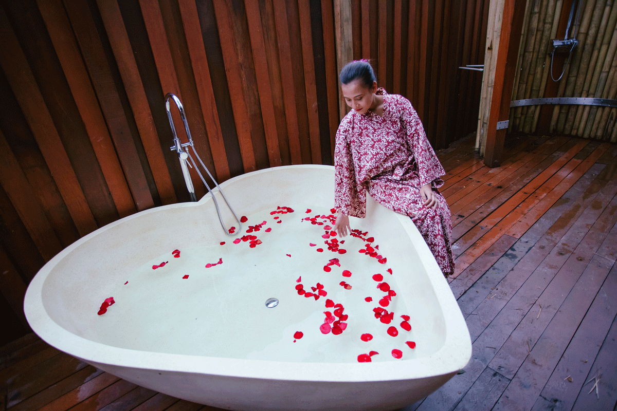 Menariknya di sini, ia menyediakan empat bilik rawatan yang sensual. Sama ada outdoor yang beratapkan lelangit membiru untuk pasangan atau bilik bertutup yang privasi. Setiap bilik rawatan dilengkapi tab mandi berbentuk hati, ruang mandi berdindingkan buluh dan sudut rehat yang selesa. Ketika enak dibelai oleh terapi di sini, kamu pasti tidak terasakan waktu berlalu. Bagaikan tuan puteri dilayani dayang istana.