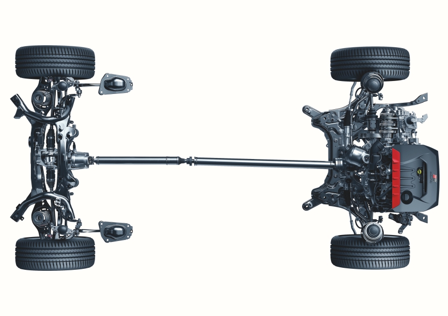 Dalam mod Normal tork ialah dalam nisbah 60:40 antara depan dan belakang, dalam mod Sport agihan tork adalah 30:70 sementara dalam mod Track, agihan tork adalah 50:50 yang seimbang. Performance Pack Edition juga menyaksikan GR Yaris dilengkapi dengan limited slip differential (LSD) Torsen.