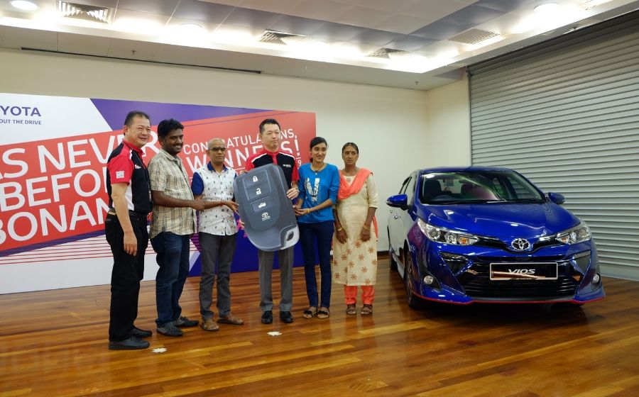 Pelanggan yang membeli dan mendaftarkan kenderaan Toyota mereka sebelum 30 April 2019 berpeluang untuk memenangi satu daripada hadiah utama yang ditawarkan, berupa sebuah Toyota Vios 1.5G.