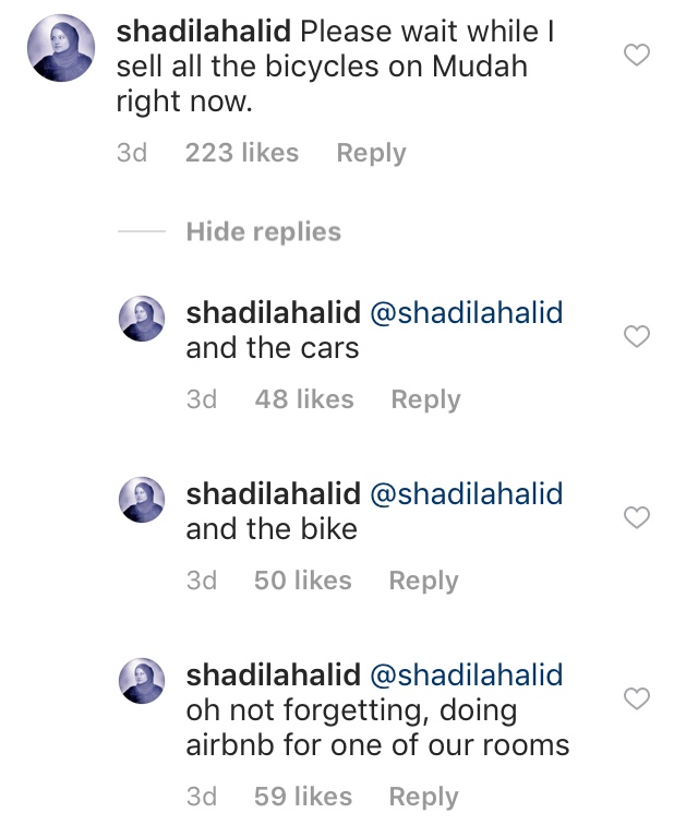 Isterinya muncul di dalam komen dan memberitahu mahu menjual semua basikal serta kereta yang dimiliki Aliff jika dia meneruskan hasratnya.
