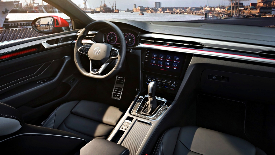 Di dalam, rekaan papan pemuka dan konsol tengah diperkemaskan lagi dengan corong udara baharu, dan susun atur sistem infotainmen dan kawalan pendingin hawa yang lebih ringkas. Selain itu, Arteon turut mendapat stereng baharu yang dilengkapi dengan panel sentuh pada sebelah kiri dan kanan, di samping upholsteri fabrik dan kulit yang dinaik taraf.