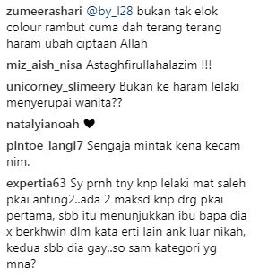 Terkejut dengan imej tersebut, ada antara netizen yang mempersoalkan tindakan Sam mewarnakan rambutnya dan menindik telinga serta hidungnya.