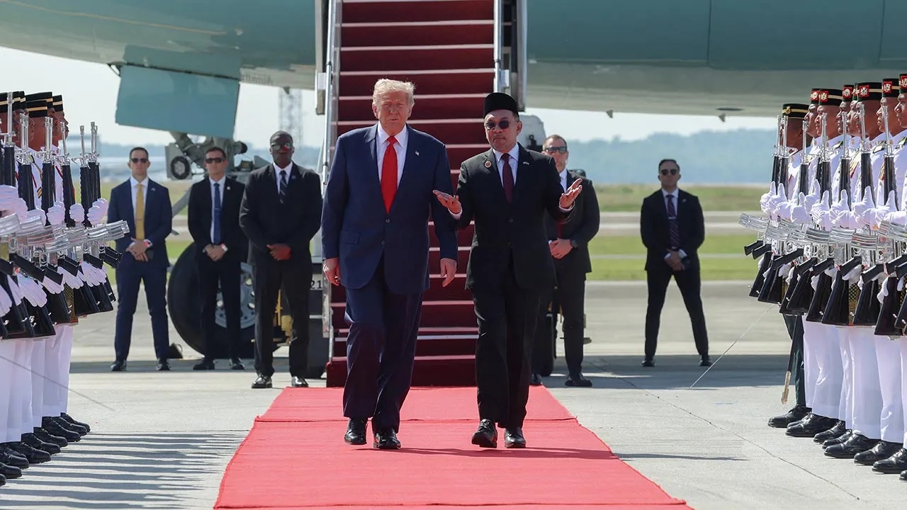 Pesawat Air Force One yang membawa Trump mendarat di Kompleks Bunga Raya Lapangan Terbang Antarabangsa Kuala Lumpur (KLIA) sekitar 9.54 pagi Ahad dan beliau disambut oleh Anwar serta beberapa Menteri Kabinet Kerajaan MADANI serta pegawai-pegawai kanan kerajaan.