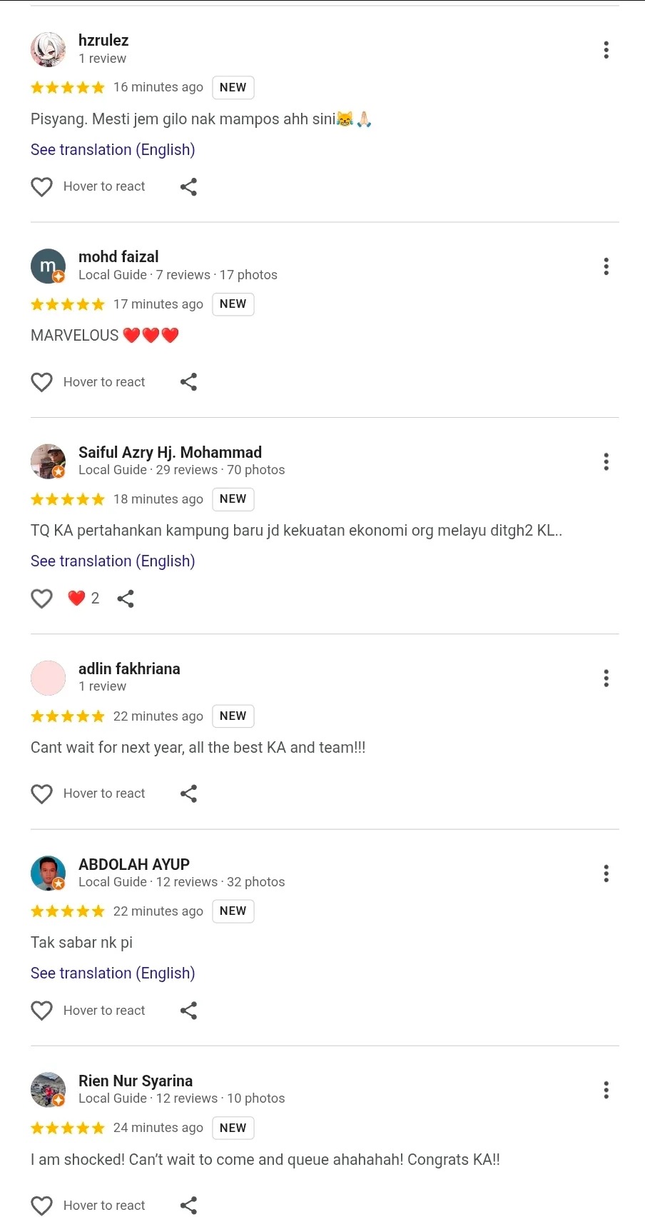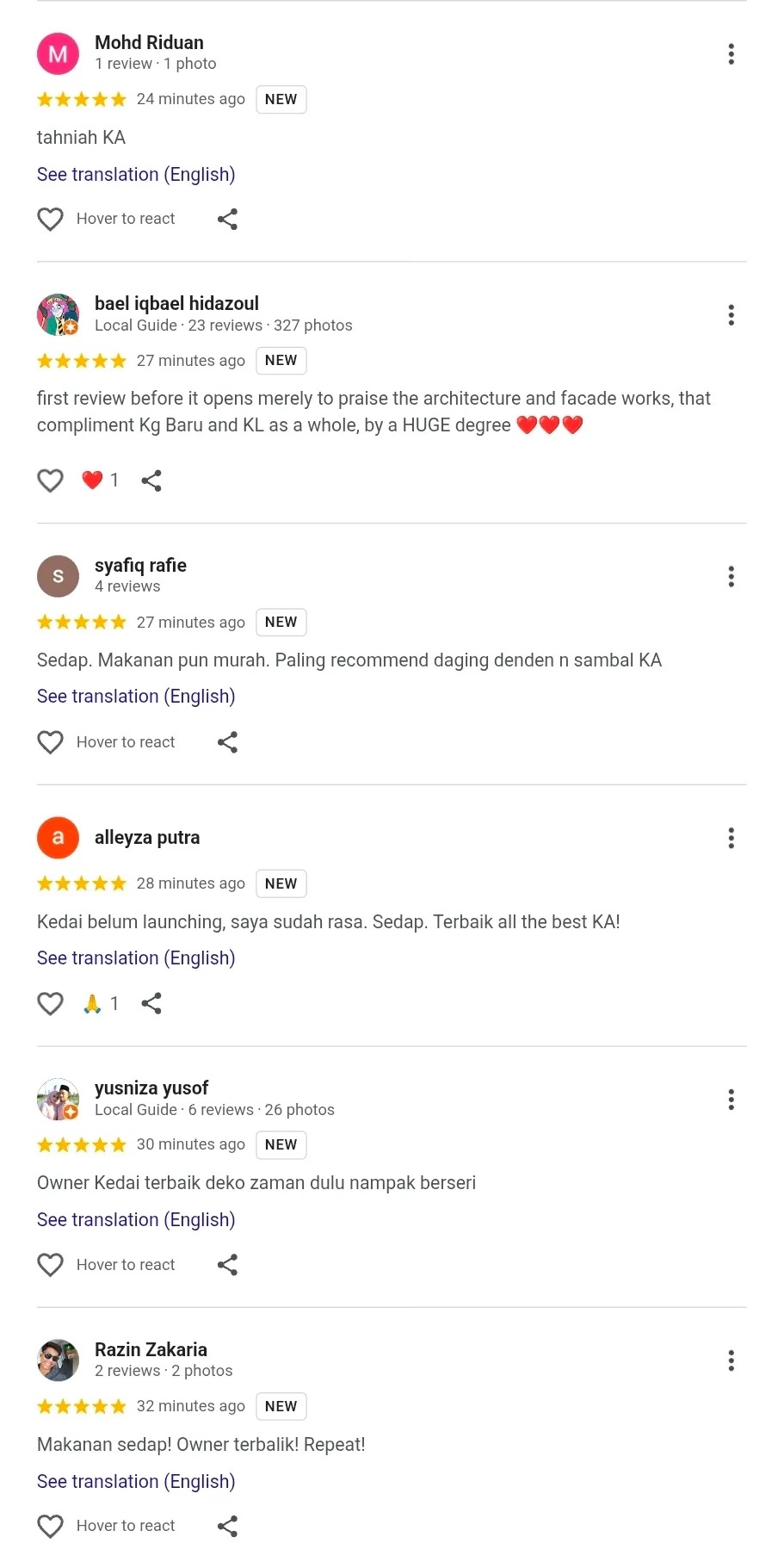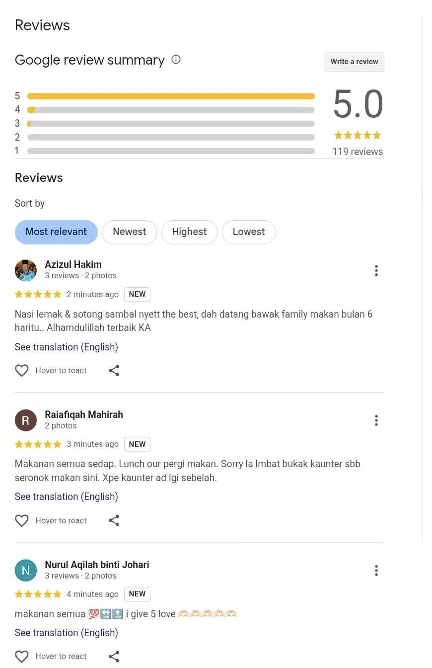 • Restoran pertama Khairul Aming, Rembayung, sudah menerima banyak ulasan positif di Google walaupun belum dibuka.