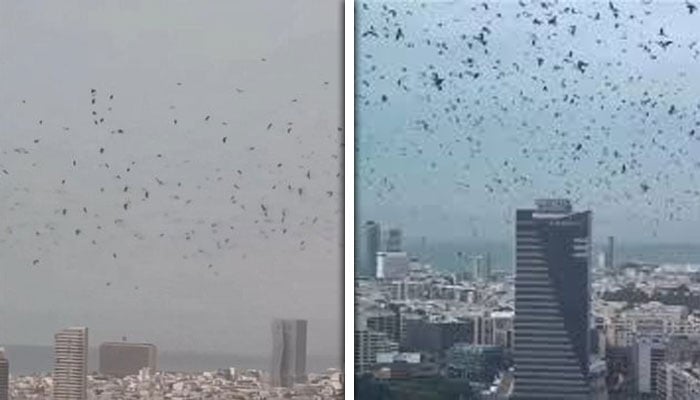 Langit Tel Aviv dipenuhi kawanan burung gagak yang terbang mengelilingi bangunan, dalam apa yang digelar orang ramai sebagai amaran malapetaka besar-besaran, lapor portal berita MailOnline.