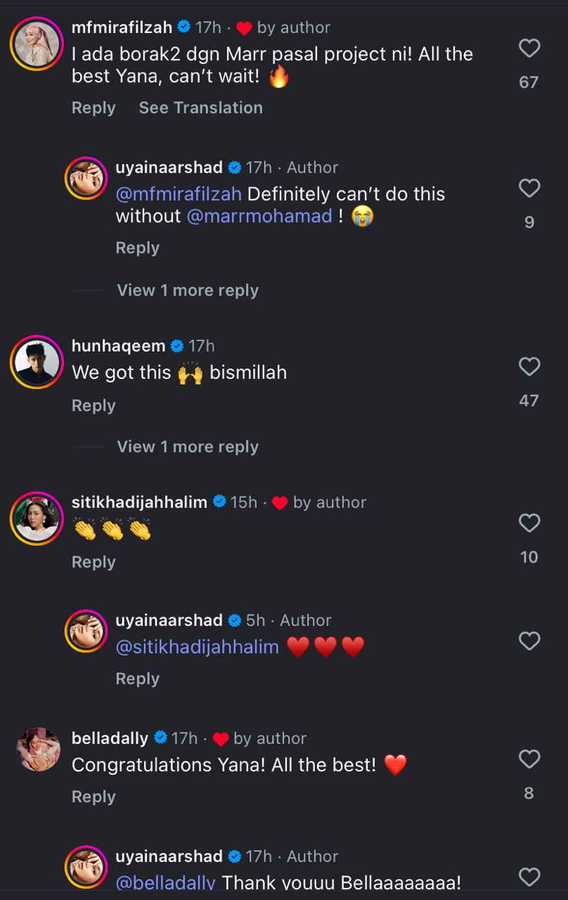Menjengah ke ruangan komen, rata-rata rakan artis tampil memberi kata-kata semangat buat Uyaina dan mendoakan yang terbaik untuk karya terbaharunya.