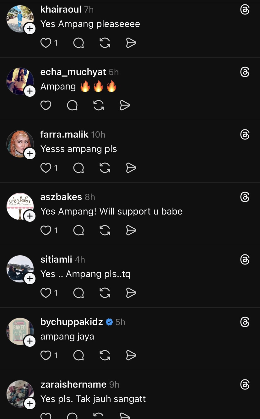 "Kemudian, pada hujung minggu istimewa sikit. Kita ada laksa Johor dan lontong. Rasa-rasa dekat area mana saya patut bukak. Saya fikirkan di kawasan Ampang," ujarnya.