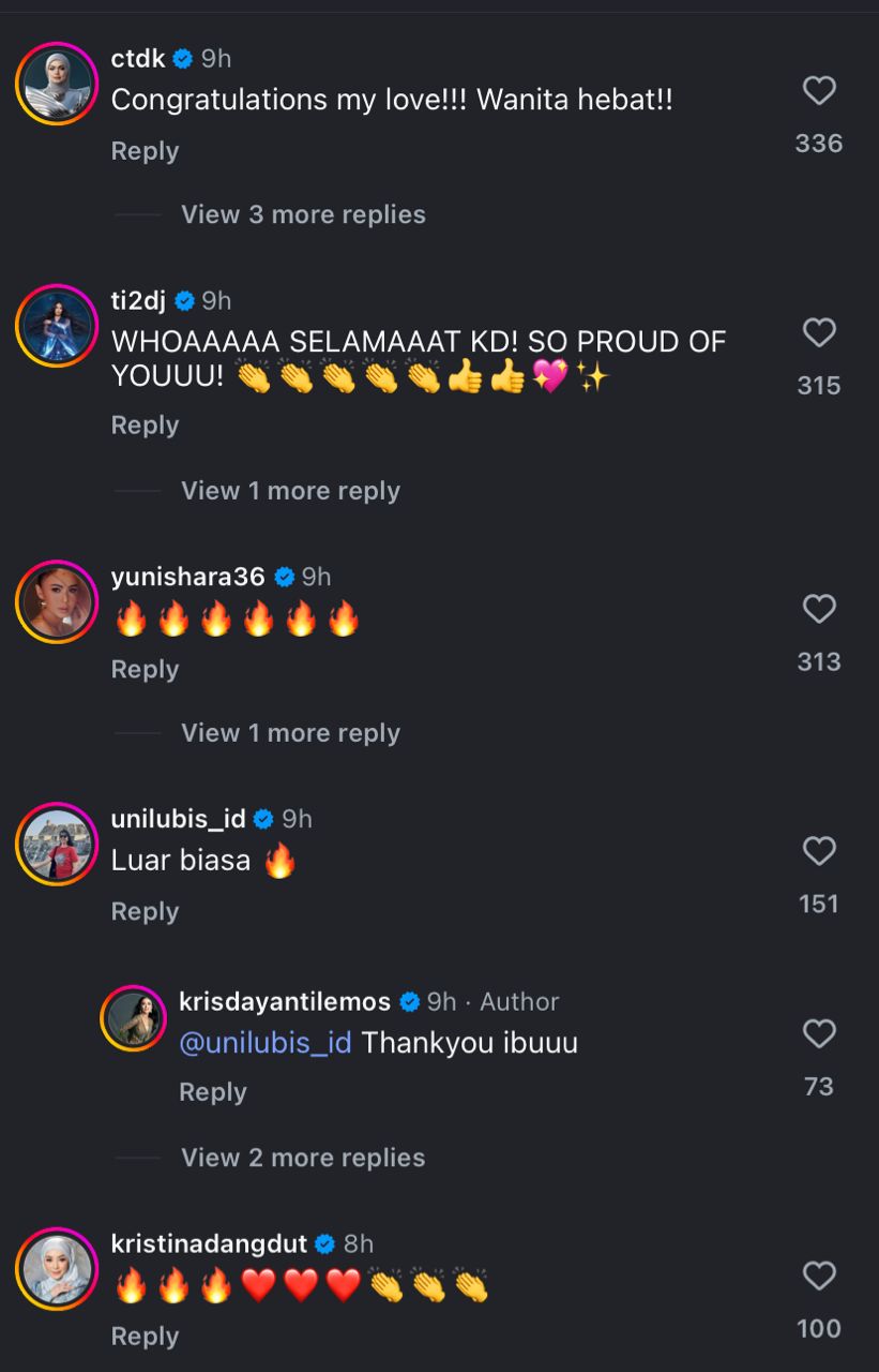 Kejayaan tersebut dibanjiri dengan ucapan tahniah dan rasa bangga dari kalangan artis dan netizen atas pencapaiannya yang mengharumkan nama negara itu.
