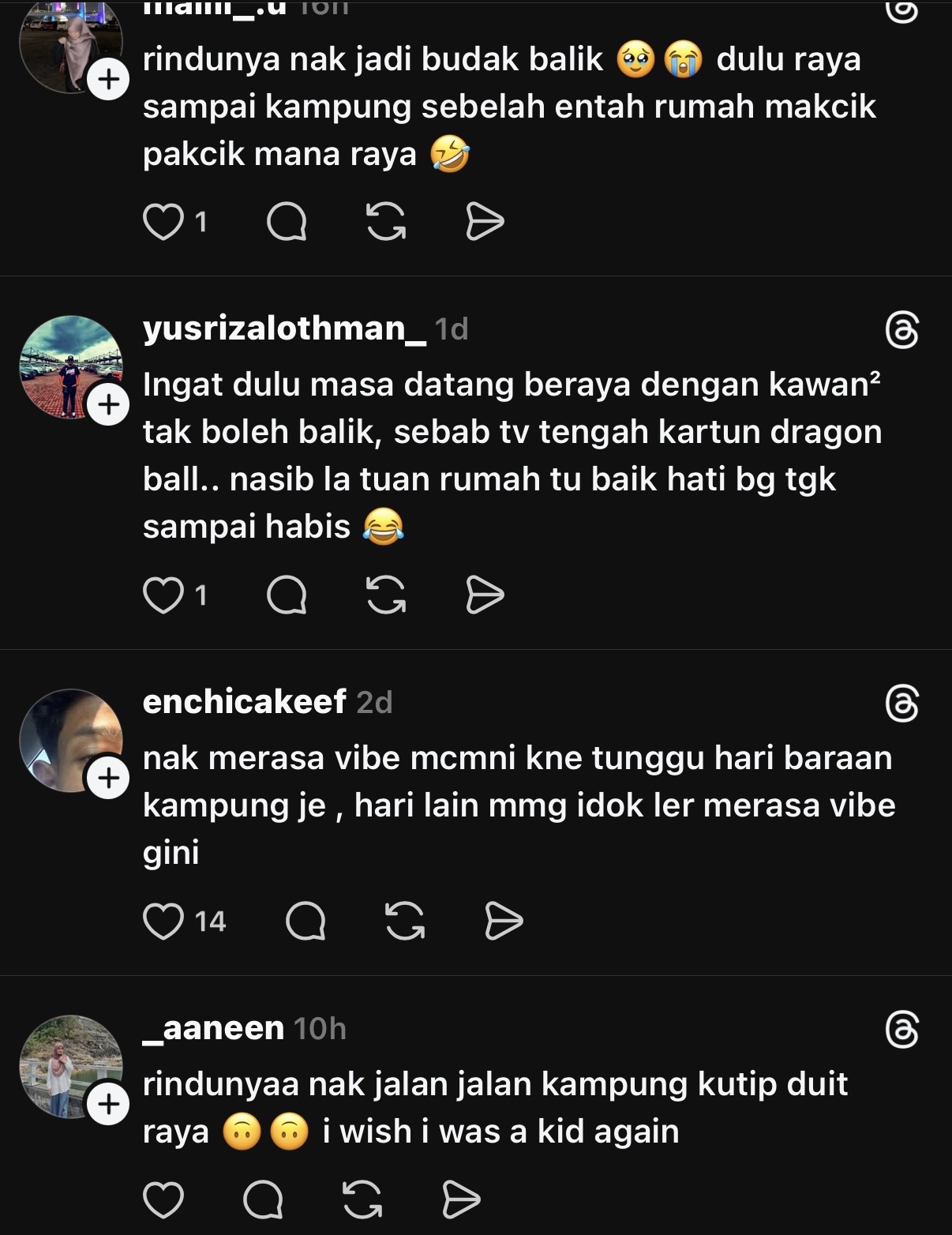 Menjengah ke ruangan komen, rata-rata netizen menginbau kembali kenangan mereka ketika beraya di setiap rumah.