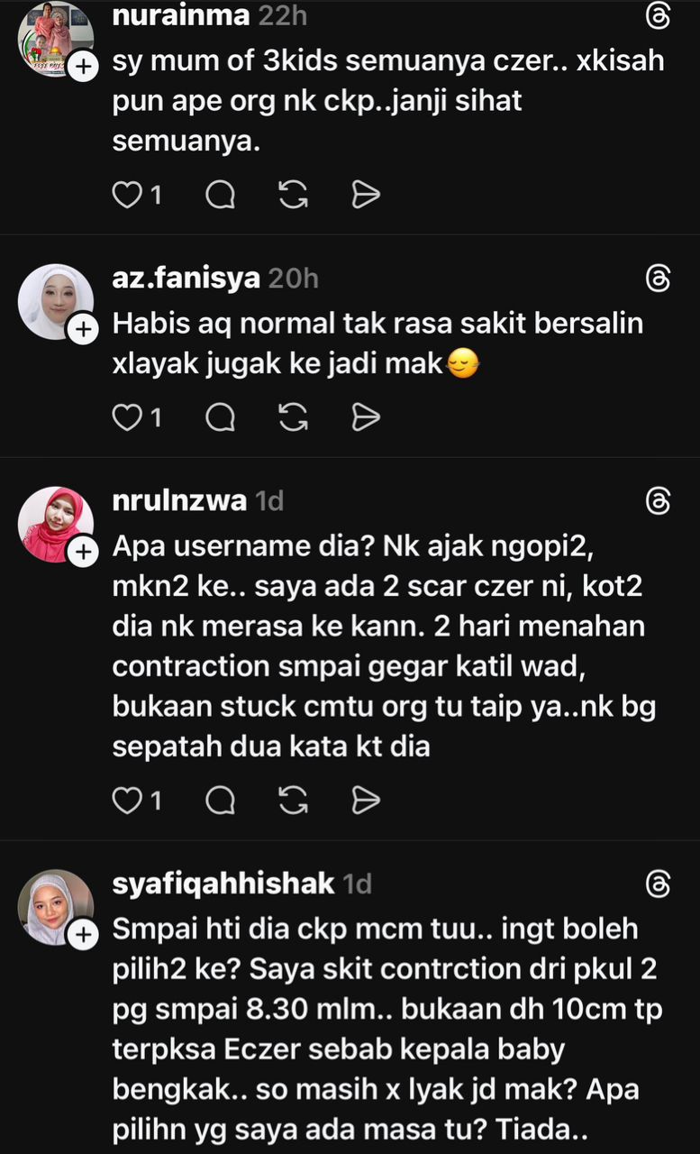 Menjengah ke ruangan komen, rata-rata netizen turut meluahkan rasa kurang senang khususnya dalam kalangan ibu yang melahirkan anak secara pembedahan.