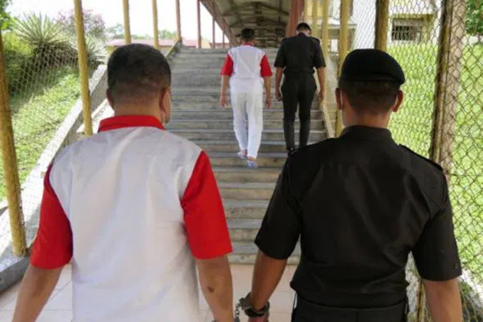 This uniform indicates that prisoners are nearing release. Some may be selected to work outside the prison under the supervision of Malaysian Prison Department officials.