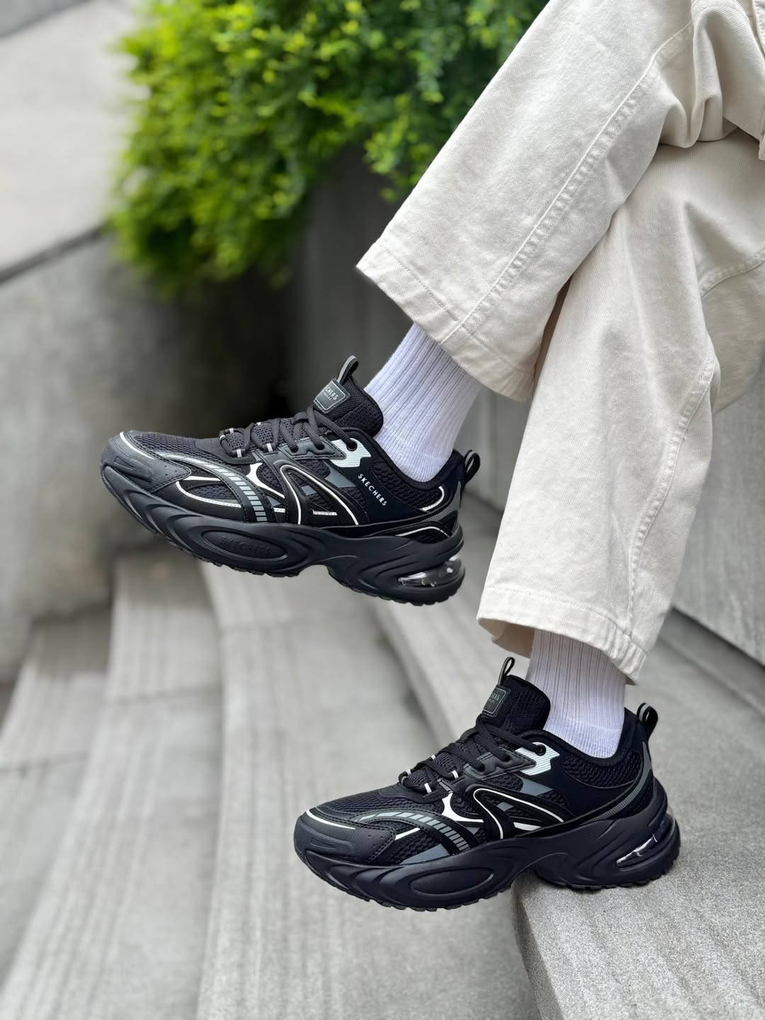 Teknologi Skech-Air 180-degree visible airbag pada bahagian midsole memberikan rasa responsif dan sokongan tambahan, menjadikan setiap langkah lebih selesa dan stabil.