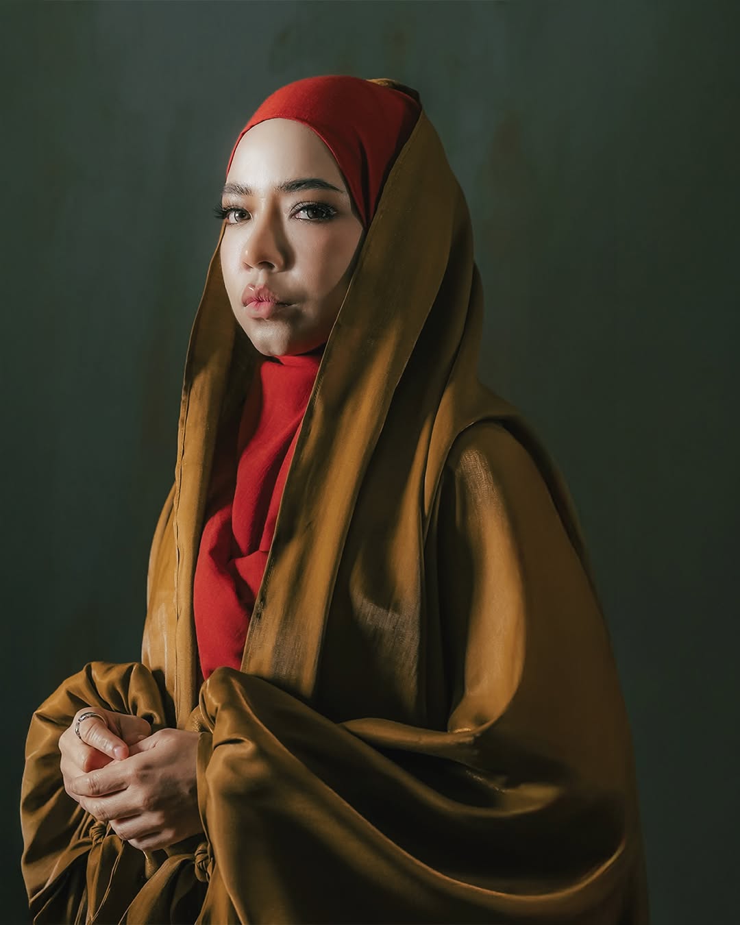 Penampilannya yang sopan namun kekal bergaya membuktikan bahawa wanita berhijab juga mampu berfesyen dengan penuh keanggunan dan keyakinan.