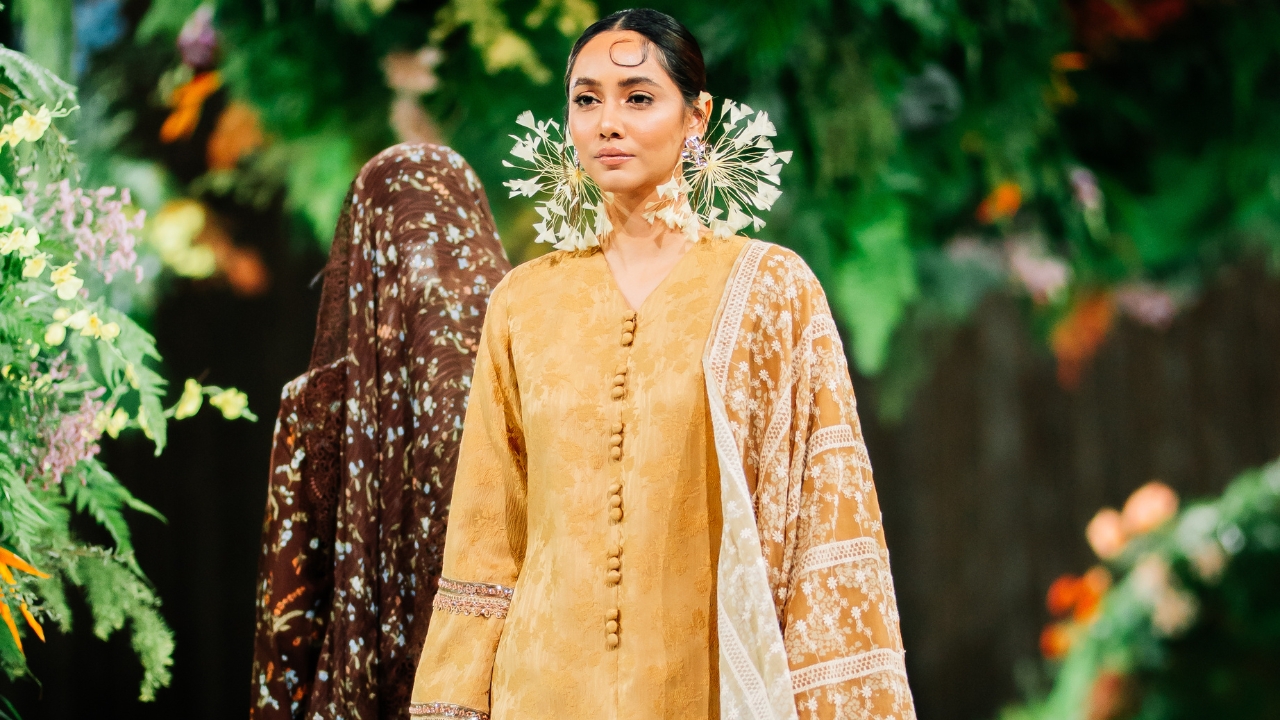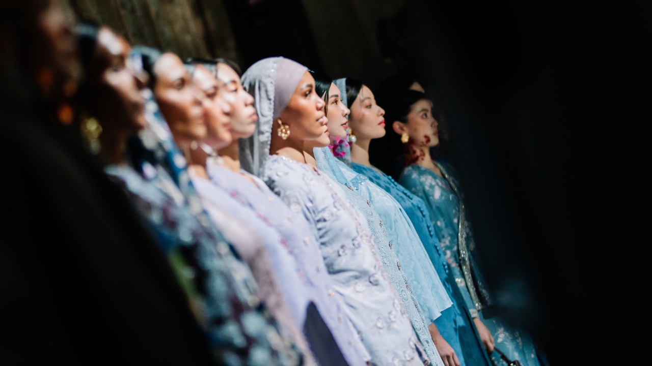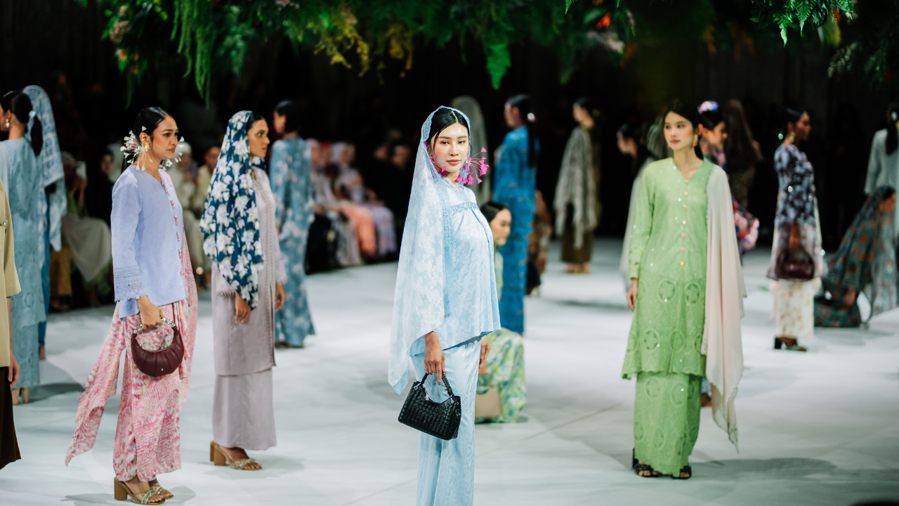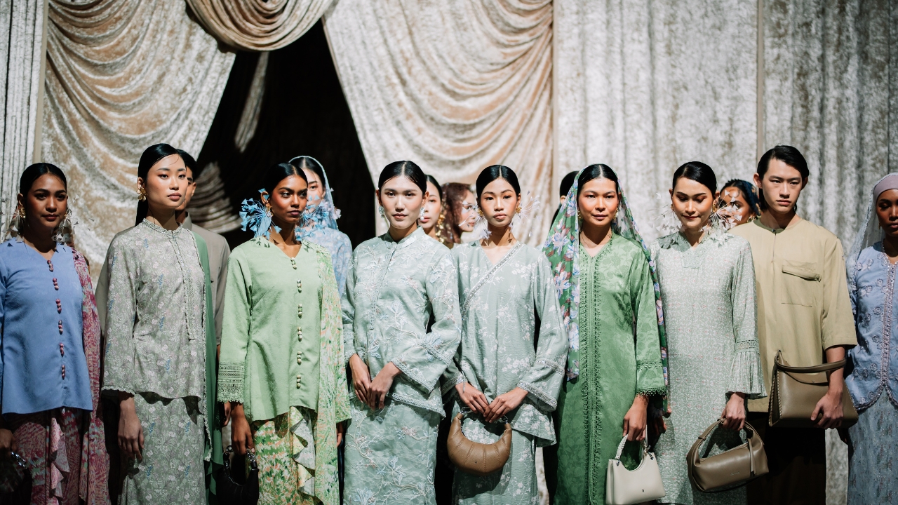 Siluet feminin, elemen flora dan sentuhan tradisional diolah dengan rasa kontemporari. Hasilnya, busana Raya yang nampak klasik tetapi segar.