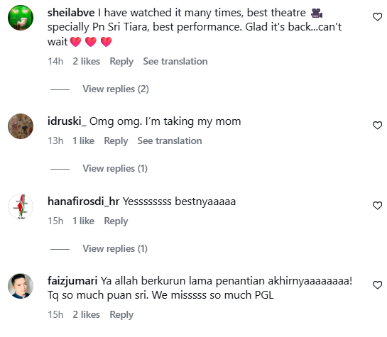 "Kalau Aisha main teater, kita datang tengok! Janji!" tulis beberapa warganet.