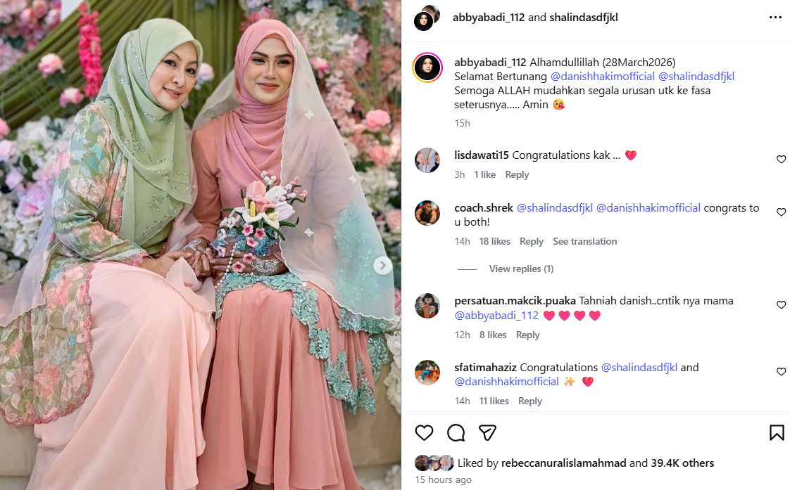 "Jika ALLAH izinkan, jadi ke peringkat seterusnya, @danishhakimofficial & @shalindasdfjkl akan ada 4 ibu ya. Mama, Mummy dari belah Danish & Mak & Ibunya dari belah Shalinda.