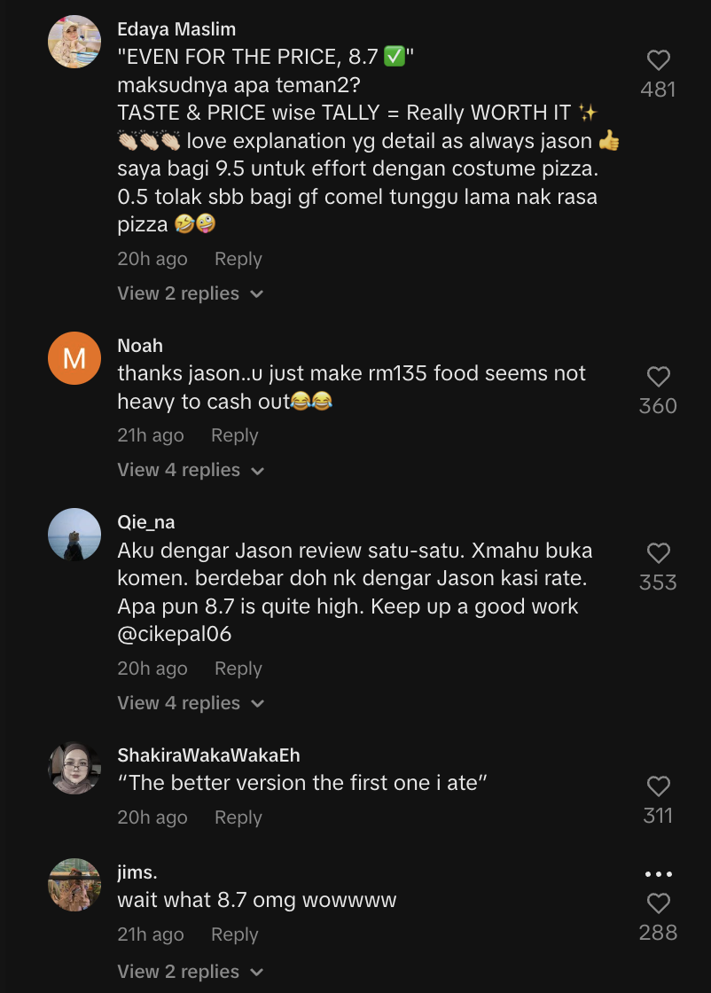 Dalam video yang dikongsikan di TikTok, Jason memberikan rating 8.7 sekali gus menunjukkan dia benar-benar berpuas hati dengan hasilnya.