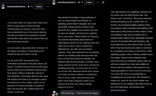 Selepas sekian lama mendiamkan diri, anak kepada pasangan terkenal dunia, David dan Vitoria Beckham iait Brooklyn Beckham akhirnya bersuara mengenai kemelut yang berlaku melibatkan mereka sejak akhir-akhir ini.