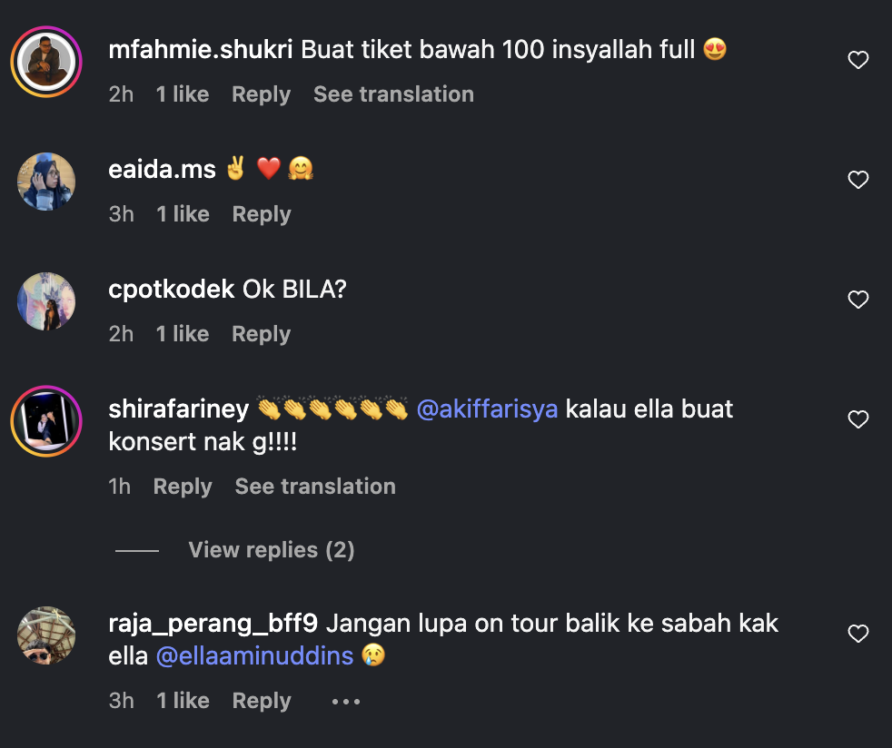 Ada yang mendakwa Ella sedang memberikan ‘hint’ penganjuran konsert solo berskala mega di SNBJ dan ramai antara mereka yang sudah tidak sabar apakah yang bakal menanti mereka.