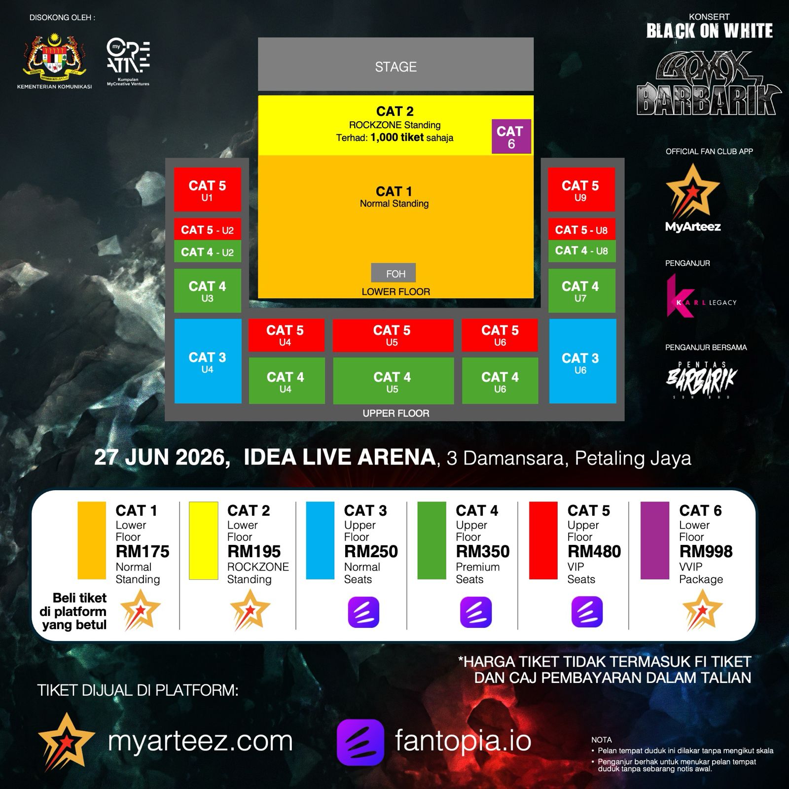 - Tiket dijual bermula RM175 hingga RM998 untuk pakej VIP, menjadikan acara ini salah satu konsert muzik tempatan yang paling dinanti tahun ini.