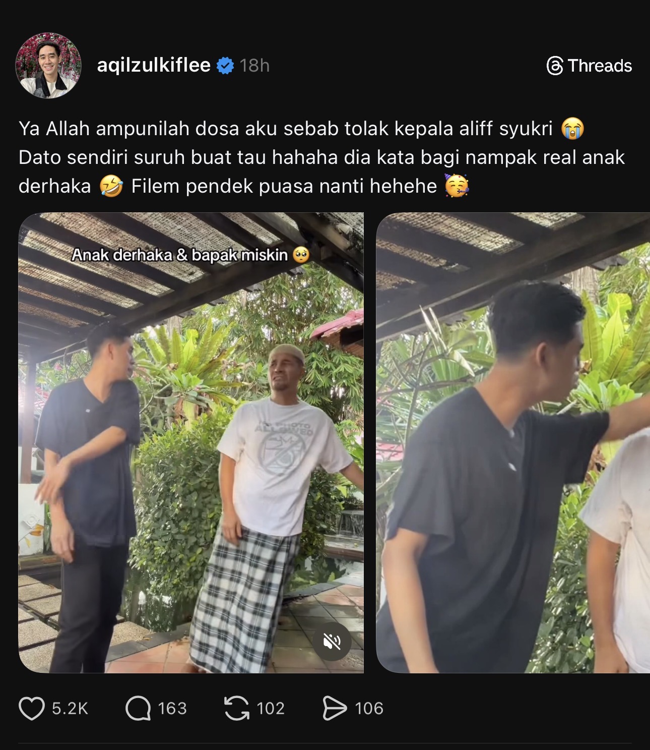 “Dia kata bagi nampak real anak derhaka. Filem pendek puasa nanti,” maklumnya.