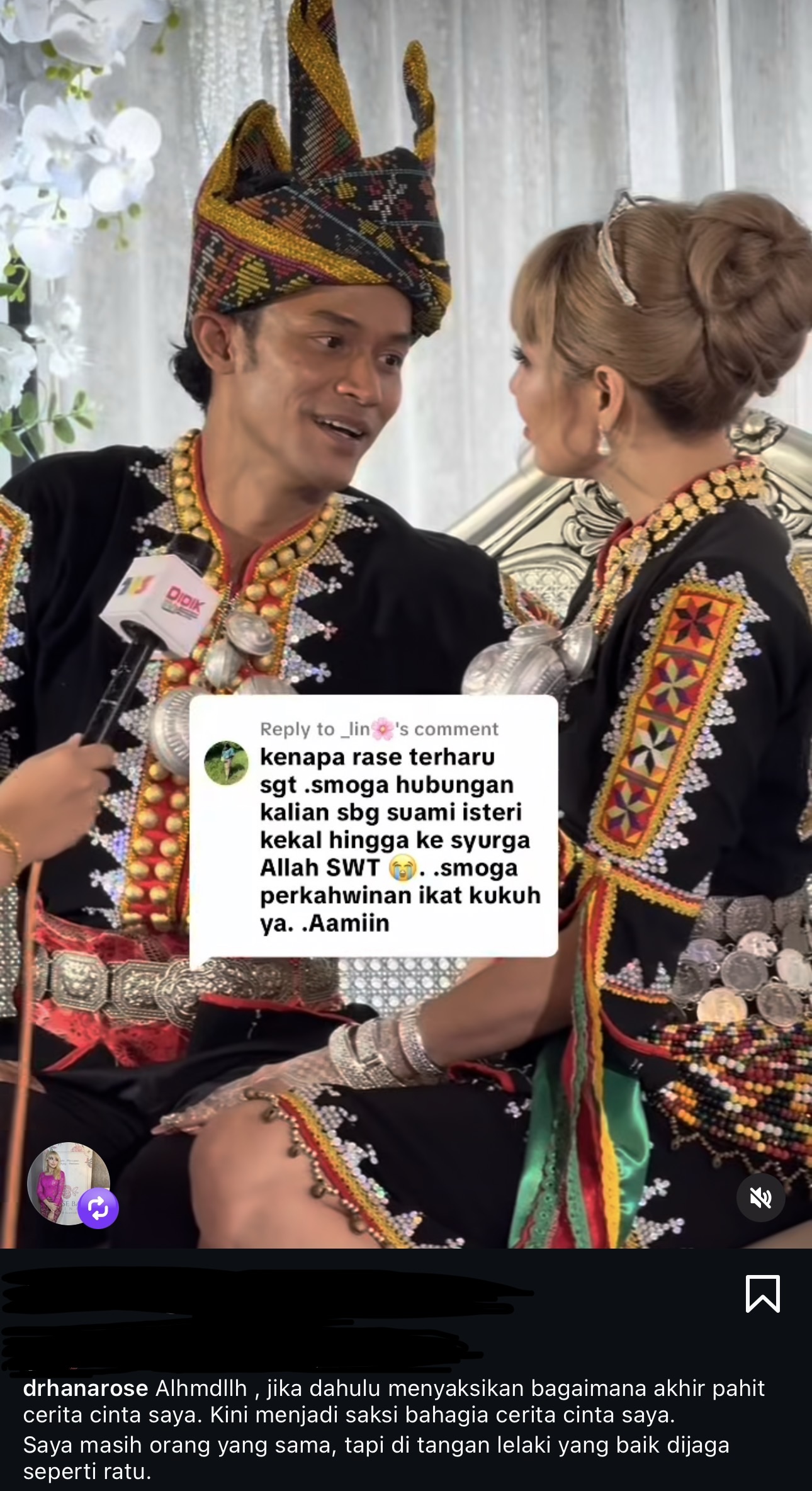 “Kenapa rasa terharu sangat, semoga hubungan kalian sebagai suami isteri kekal hingga ke syurga Allah SWT. Semoga perkahwinan ikat kukuh ya,” tulis individu tersebut.