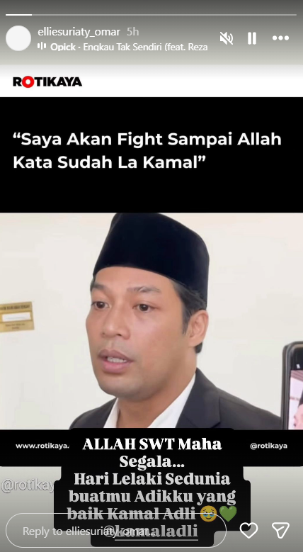 - Kamal bertekad untuk terus berjuang dalam kes rumah tangganya dan Ellie mendoakan yang terbaik buatnya sempena Hari Lelaki Sedunia.