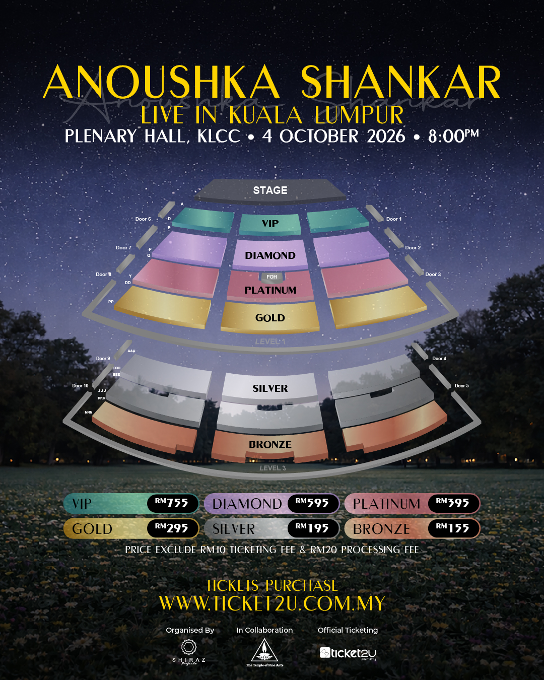 - Anoushka Shankar, ikon sitar dunia dengan 13 pencalonan Grammy, akan mengadakan konsert eksklusif di Kuala Lumpur pada 4 Oktober 2026.
