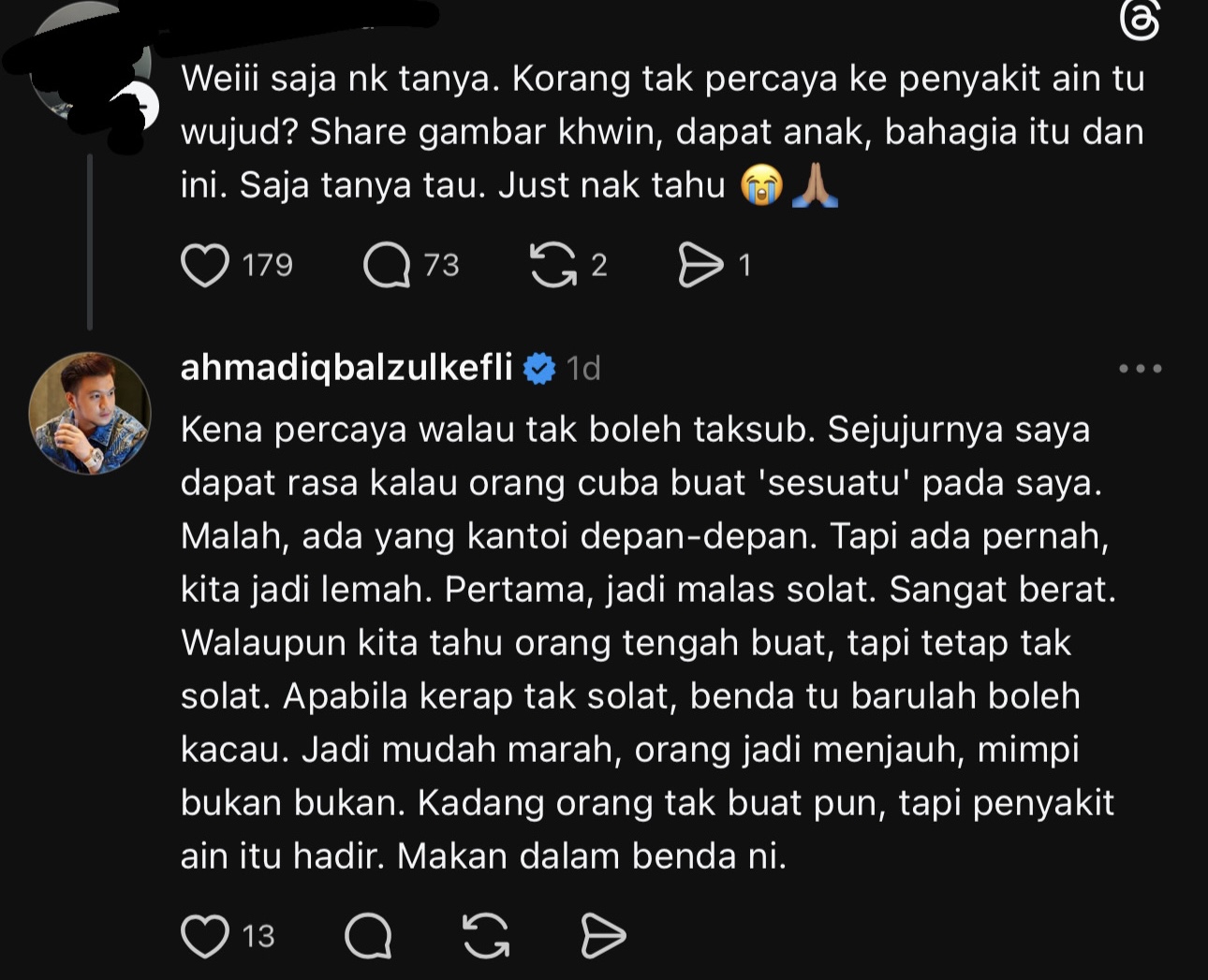 Pempengaruh media sosial dan usahawan, Iqbal Zulkefli, tampil memberikan pandangannya susulan pertanyaan netizen mengenai kepercayaan terhadap kewujudan penyakit ain.