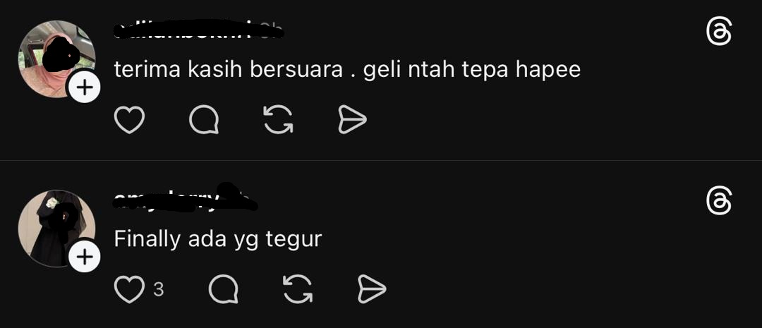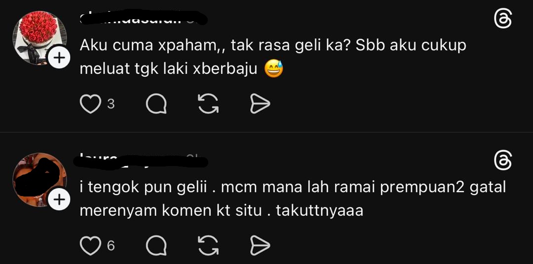 “Perempuan pula tak nak kalah dengan comment yang tak senonoh. Masalahnya bini orang pun nak menggatal sekali.
