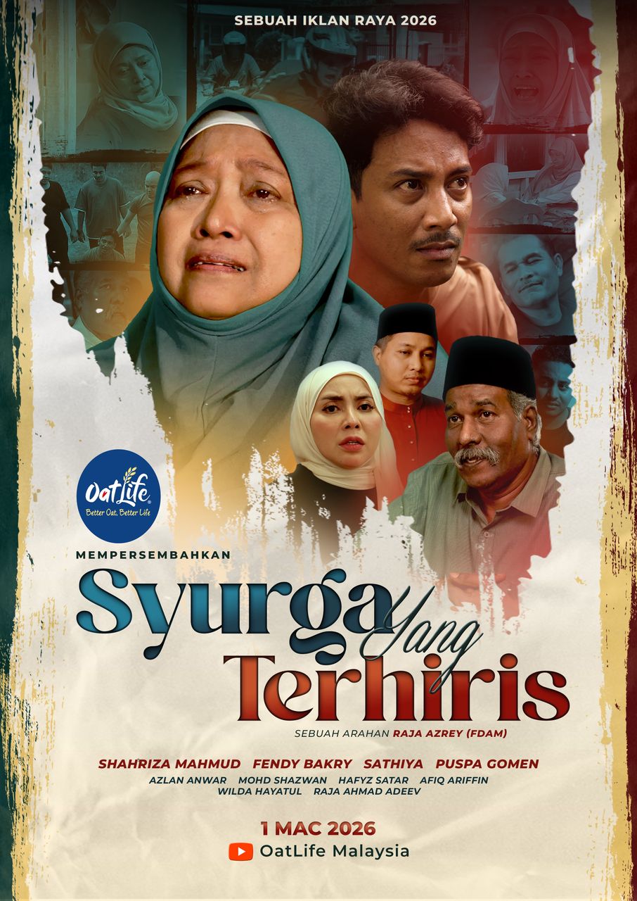 Pengarah dan pelakon, Raja Azrey bakal menghadiahkan penonton sebuah iklan raya sarat emosi berjudul Syurga Yang Terhiris, terbitan OatLife. Naskhah tersebut dijadualkan menemui penonton pada 1 Mac 2026 menerusi platform YouTube OatLife Malaysia, iaitu seminggu selepas umat Islam memulakan ibadah puasa.