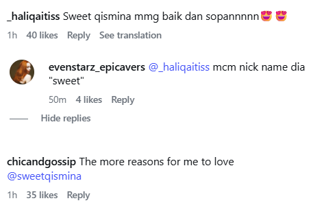 "The more reasons for me to love Sweet Qismina," tambah @chicandgossip.
