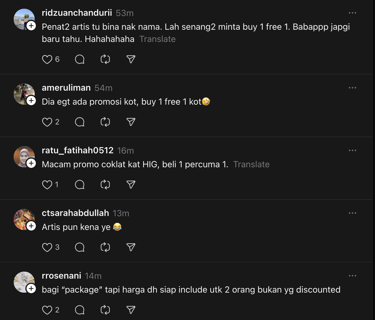 - Shila menegaskan mereka bukan satu pakej yang perlu dibayar bersama kerana masing-masing mempunyai kerjaya dan kadar bayaran berbeza.