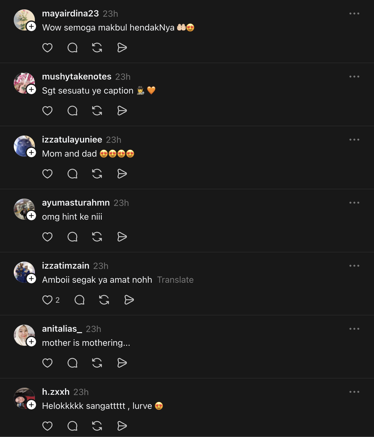 • Kapsyen tersebut mencetuskan spekulasi sama ada Mimi sedang hamil, dengan ramai peminat mendoakan yang terbaik dan berharap impian Mimi untuk memiliki anak kembar tercapai.