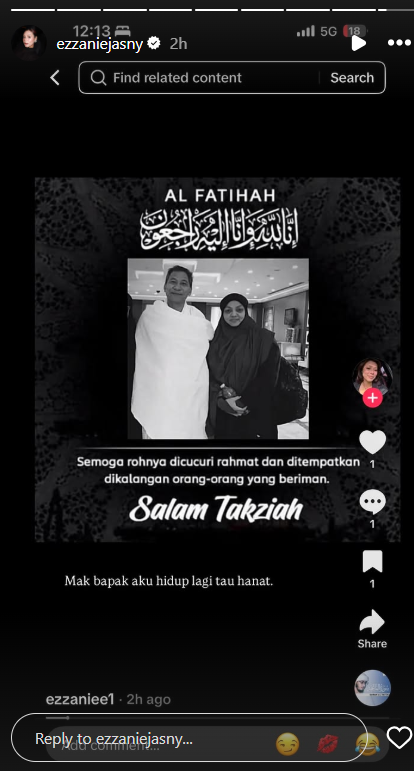 - Akaun palsu tersebut meninggalkan komen tidak wajar dan menyebarkan maklumat palsu termasuk gambar serta ucapan takziah palsu terhadap ibu bapanya yang masih hidup.