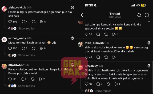 Malah, ada juga yang memuji sikap profesionalisme Emma yang tetap berbaik dengan Spacedollah meskipun mereka merupakan bekas kekasih.