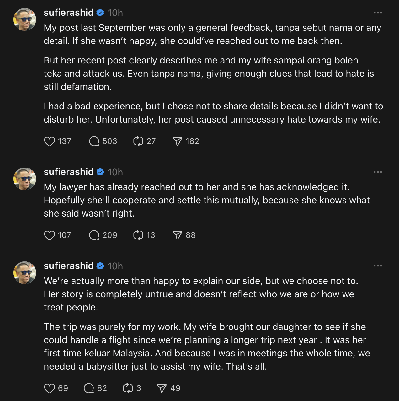 “Post saya bulan September lepas cuma general feedback, tanpa sebut nama atau apa-apa detail. Kalau dia tak puas hati, dia boleh je reach out masa tu.