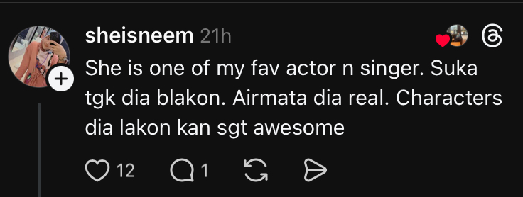 - Seorang pengguna Threads memuji Nabila sebagai pelakon yang power dan sesuai fokus dalam bidang lakonan berbanding nyanyian.