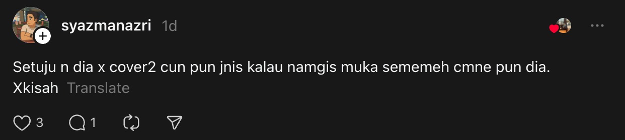 Menerusi Threads, seorang pengguna bernama Fairus berpendapat lakonan Nabila Razali dalam drama tersebut begitu natural dan tidak dibuat-buat.