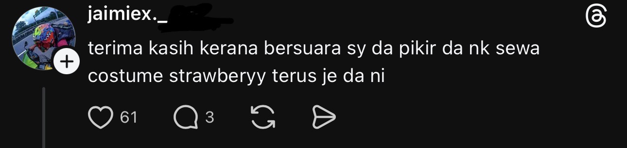 “Dah macam perarakan hari merdeka tadika kemas. Kalau nak sama, pakai satu color je bang. Jangan nak matcha strawberry sangat,” tulisnya.