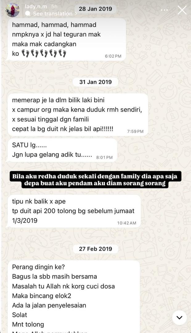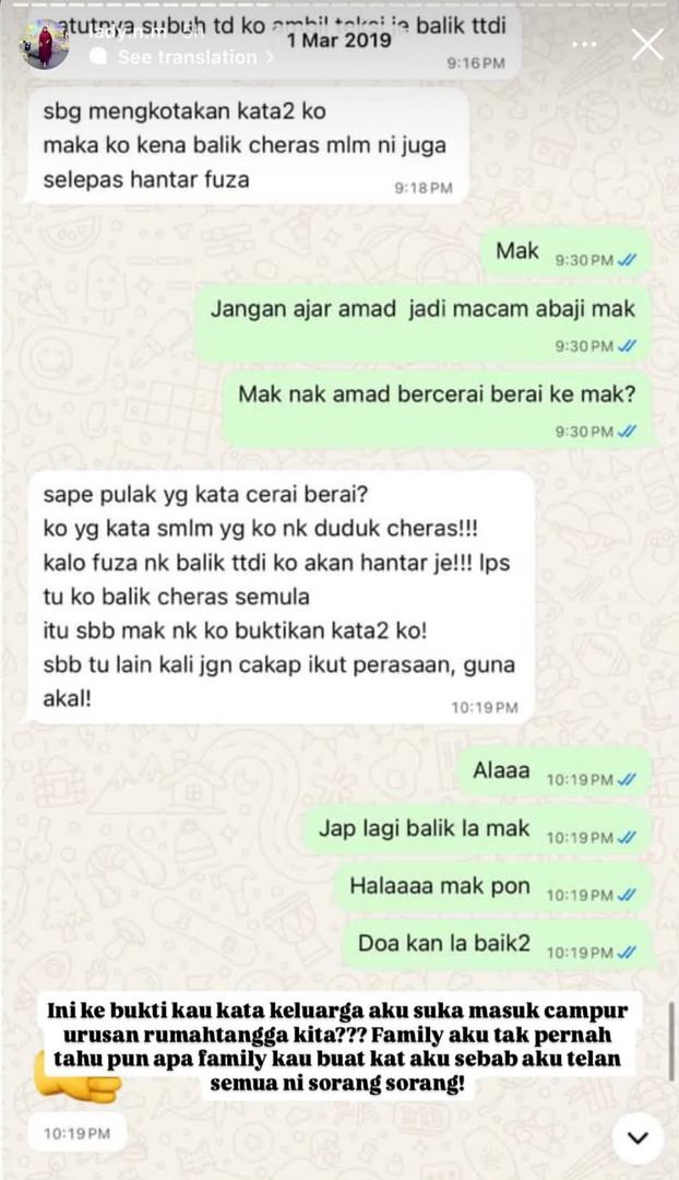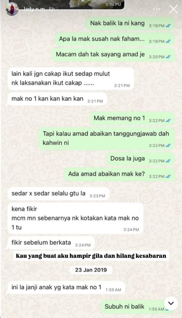 “Ini ke bukti kau kata keluarga aku suka masuk campur urusan rumah tangga kita? Keluarga aku tak pernah tahu pun apa keluarga kau buat dekat aku sebab aku telan semua ni sorang sorang!,” luahnya.