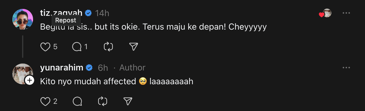 Menjengah ruangan komen, rata-rata peminat tampil memberikan kata-kata semangat dan sokongan buat Yuna agar terus kuat dan tidak mudah terpengaruh dengan komen-komen yang tidak membina.