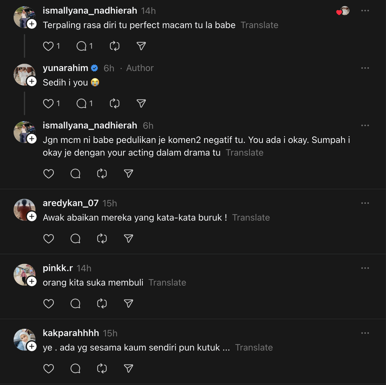 Pelakon, Yuna Rahim meluahkan rasa kecewa terhadap sikap segelintir netizen yang sering menjatuhkan orang lain dengan kata-kata negatif.