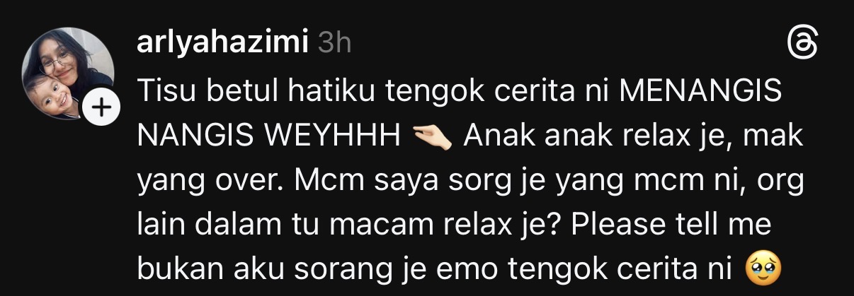 “Tisu betul hati aku. Anak-anak relaks ja tapi mak dia yang over sampai menangis.