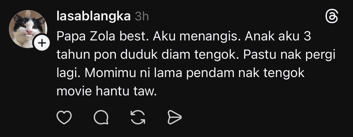 “Papa Zola best, aku menangis. Anak aku umur tiga tahun pun duduk diam ja tengok,” komen netizen.