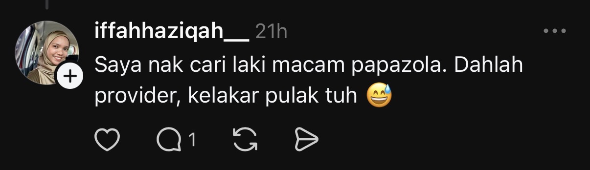 “Saya nak cari lelaki macam Papa Zola. Dah lah provider, kelakar pula tu.
