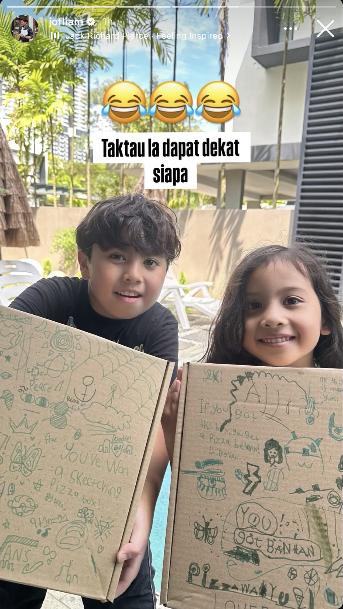 Difahamkan lukisan dikotak berkenaan dilukis secara spontan oleh dua anak Jofliam iaitu Han dan Yuki bagi piza yang berharga RM10 pada hari tersebut.