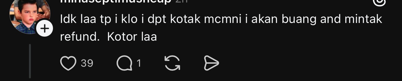 “Saya lah customer malang yang dapat kotak lukisan art berat tu. Beli sebab fomo je, nak rasa dough dia. Tapi hmmm macam makan roti naan dekat mamak,” kongsinya.